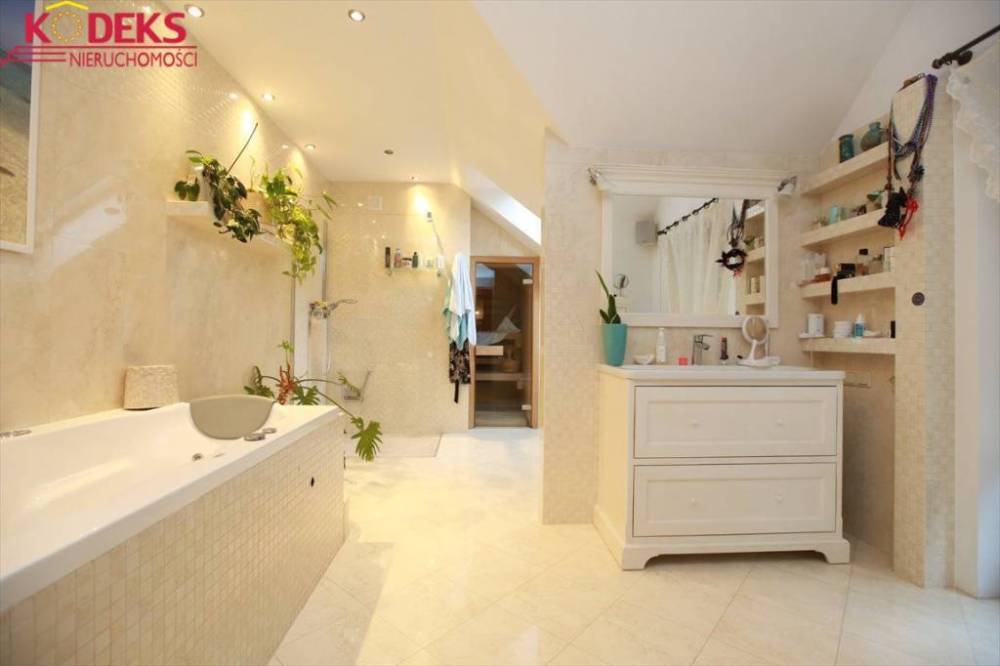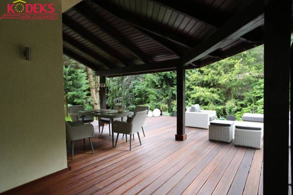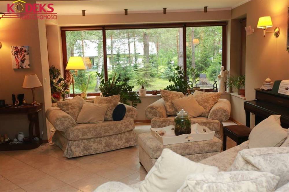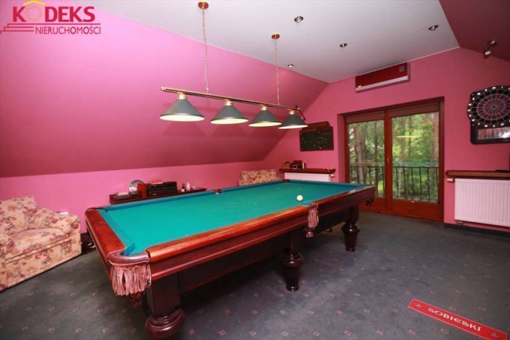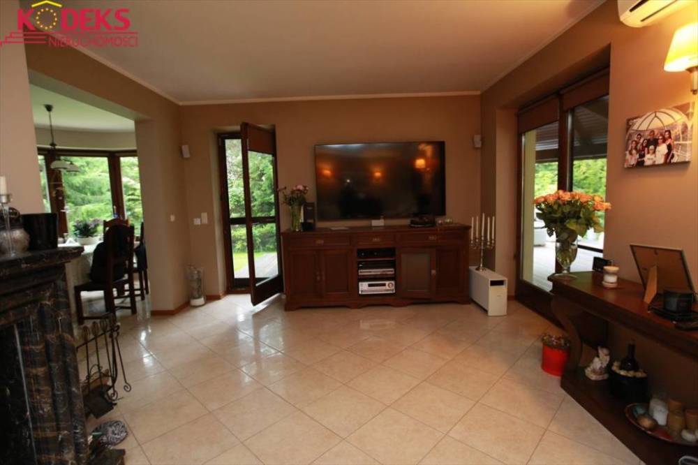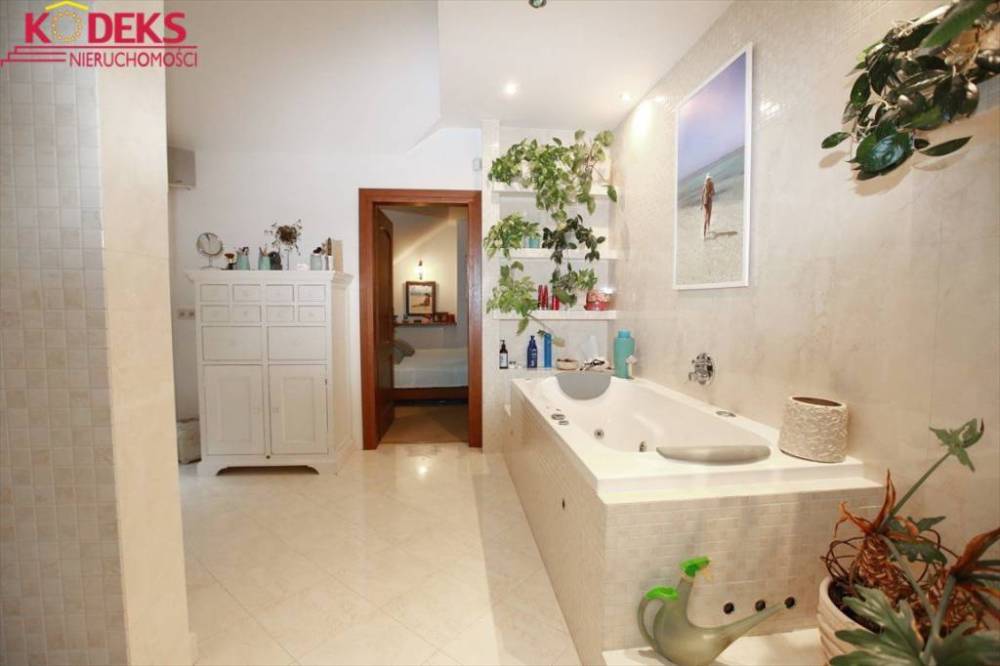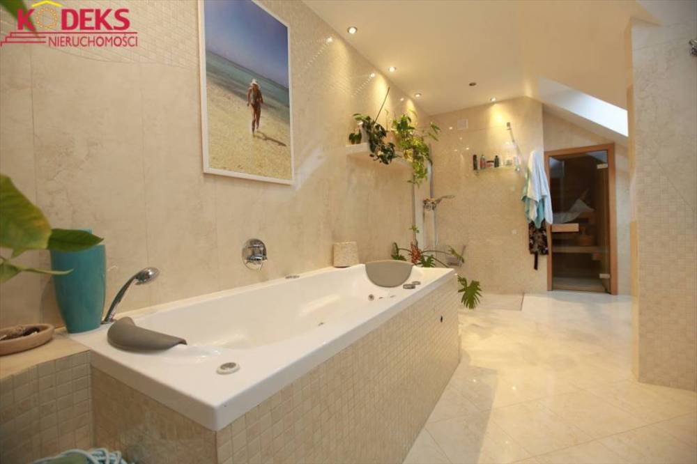 Przedstawiamy wyjątkową ofertę luksusowej rezydencji wolnostojącej, której powierzchnia użytkowa wynosi aż 240 m, usytuowanej na przestronnej działce o powierzchni 1630 m. Ten elegancki dom, usytuowany w spokojnej okolicy przy lesie, to idealne miejsce dla osób ceniących ciszę, prywatność i wysoką jakość życia. Wybudowany w najnowszej technologii i z najwyższej klasy materiałów, spełni oczekiwania nawet najbardziej wymagających. Wnętrza domu wykończone są z dbałością o każdy detal, w wysokim standardzie, a całość jest w pełni umeblowana i wyposażona, gotowa do zamieszkania od zaraz. Działka została starannie zagospodarowana - obsadzona drzewami i krzewami ozdobnymi, tworząc przyjemny i relaksujący klimat. Rozkład pomieszczeń: Na parterze znajdziemy przestronny salon o powierzchni 40 m z wyjściem na 100-metrowy taras z jacuzzi - idealnym miejscem na relaks i spotkania z bliskimi. Kuchnia połączona z jadalnią (12 m + 15 m) zapewnia komfortowe warunki do codziennych posiłków. Dodatkowo, do dyspozycji mamy gabinet 15 m, łazienkę, hol o powierzchni 20 m, pralnię, pomieszczenie gospodarcze oraz przestronny garaż. Na piętrze znajdują się trzy sypialnie: główna o powierzchni 20 m z garderobą, łazienką i sauną, druga sypialnia 16 m z garderobą i łazienką, oraz trzecia - obecnie sala bilardowa o powierzchni 20 m. Wszystkie sypialnie mają dostęp do balkonów, co dodaje uroku i pozwala cieszyć się widokiem na otaczającą naturę. Standard wykończenia obejmuje gresowe podłogi w salonie, kuchni, jadalni i holu, a w gabinecie oraz pokojach na piętrze położono wysokiej jakości wykładzinę. Łazienki wykończone w eleganckiej glazurze i terakocie. Okna drewniane czteroszybowe, antywłamaniowe, zapewniające bezpieczeństwo i izolację. Dach pokryty ceramiką - trwały i estetyczny. Dom ogrzewany jest gazem - w salonie, kuchni i łazienkach zastosowano ogrzewanie podłogowe, natomiast w pozostałych pomieszczeniach grzejniki. Klimatyzacja zamontowana w salonie, kuchni, jadalni oraz sypialniach gwarantuje komfort nawet podczas gorących dni. Uwaga! W cenie większość mebli i wyposażenia, co czyni ofertę jeszcze bardziej atrakcyjną. Media obejmują prąd, gaz, wodę z własnego ujęcia oraz ekologiczne szambo. Lokalizacja domu jest świetnie skomunikowana - niedaleko obiektów usługowo-handlowych, a także łatwy dostęp do autobusów i SKM, co zapewnia wygodę codziennego dojazdu. Ta oferta to prawdziwa perełka na rynku nieruchomości - serdecznie polecamy! Zainteresowanych zapraszamy do kontaktu i odwiedzin. Więcej ofert znajdą Państwo na stronie www.kodeks-nieruchomosci.pl.