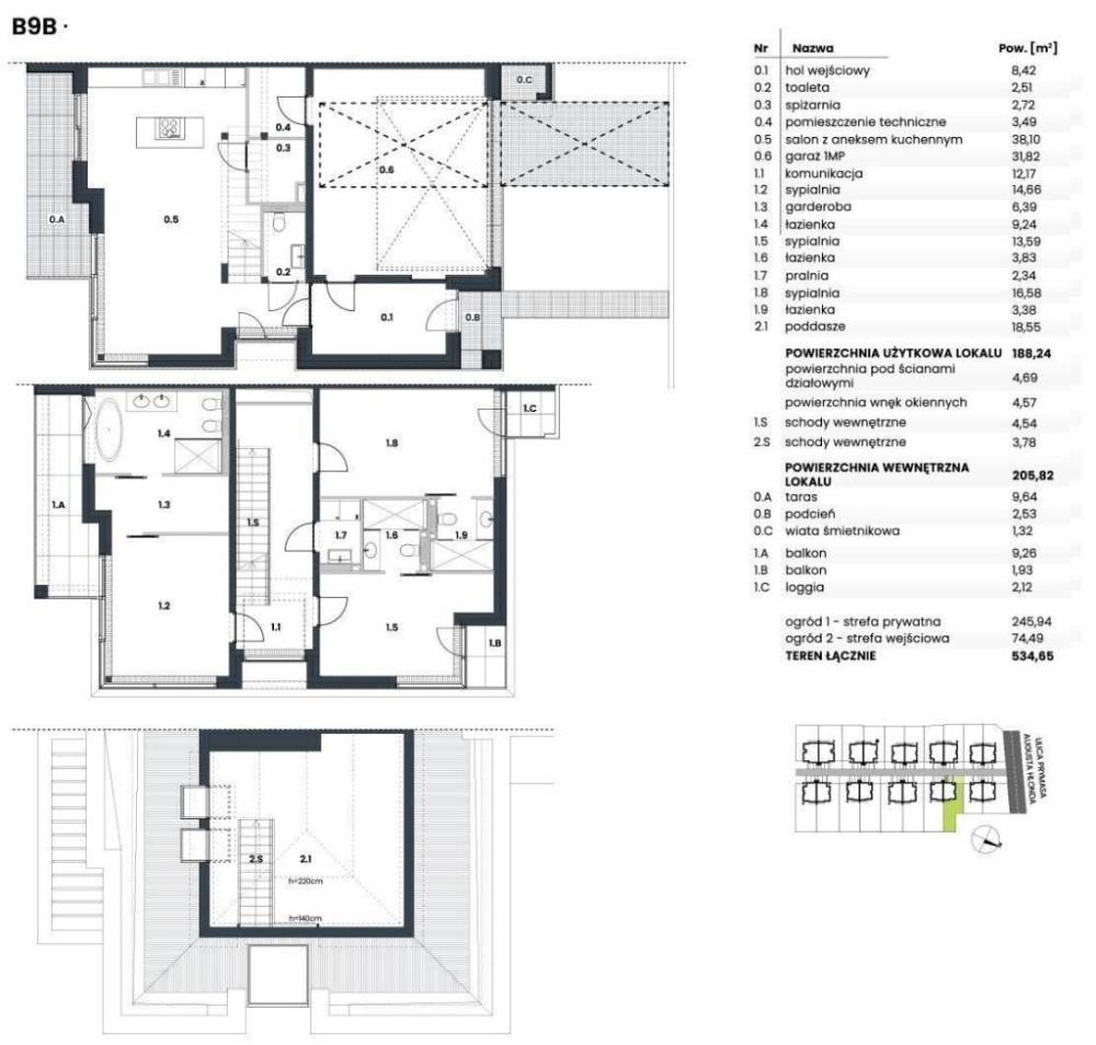 Dwu poziomowe, 5-pokojowe nowoczesne mieszkanie z ogrodem i garażem - Wilanów, ul. , Prymasa Augusta Hlonda , , Cena: 4 600 000 zł Powierzchnia mieszkania , 188,24 , ,m Powierzchnia terenu 534,65 ,m , Bezpośrednio od dewelopera Na sprzedaż komfortowe, ,dwu poziomowe, 5-pokojowe mieszkanie o powierzchni 188,24 m, z garażem, na Wilanowei przy ul. Prymasa Augusta Hlonda. Przemyślany układ pomieszczeń zapewnia wygodę zarówno rodzinie, jak i parze czy singlowi poszukującemu przestrzeni do życia i pracy w jednym miejscu. Rozkład pomieszczeń: Parter , , hol wejściowy , ,- 8,42 m toaleta , ,- 2,51 m spiżarnia - ,2,72 m pomieszczenie techniczne , ,- 3,49 m salon z aneksem kuchennym , ,- 38,10 m taras , ,- 9,64m podcień , ,- 2,53 m wiata śmietnikowa , ,- 1,32 m garaż , ,- 31,82 m Piętro , komunikacja , - 12,17 m sypialnia , ,- 14,66 m garderoba , ,- 6,39 m łazienka ,- 9,24 m sypialnia ,- 13,59 m łazienka , ,- 3,83 m pralnia ,- 2,34 m sypialnia ,- 16,58 m łazienka ,- 3,38 m Poddasze ,- 18,55 m ogród 1 - strefa prywatna ,- 245,94 m ogród 2 - strefa wejściowa ,- 74,49 m O inwestycji , Zamknięte, luksusowe osiedle położone jest w prestiżowej i dynamicznie rozwijającej się części Wilanowa, w bezpośrednim sąsiedztwie bogatej infrastruktury Królewskiej Dzielnicy. W ofercie znajdują się przestronne, nowoczesne rezydencje o powierzchniach od około 250 do 360 m, usytuowane na działkach o wielkości od 550 do 1200 m. Projekt wyróżnia się modernistyczną architekturą, elegancką kolorystyką utrzymaną w odcieniach bieli, szarości i jasnego beżu oraz wykończeniem z naturalnego kamienia. Duże przeszklenia nadają budynkom lekkości i zapewniają doskonałe doświetlenie wnętrz, tworząc poczucie przestrzeni i otwartości. Każdą rezydencję otacza prywatny ogród, stanowiący idealne miejsce do relaksu i spędzania czasu na świeżym powietrzu. Reprezentacyjna aleja główna zapewni wygodny dojazd do poszczególnych domów. Szeroka, elegancka i starannie zaprojektowana, z piękną zielenią, stanie się centralną osią całej inwestycji. Teren osiedla będzie ogrodzony, strzeżony i całkowicie zamknięty. Przy wjeździe powstanie portiernia z kontrolą dostępu, a całość uzupełnią alejki spacerowe, starannie zaplanowana zieleń oraz elementy małej architektury. Monitoring i systemy bezpieczeństwa zapewnią mieszkańcom pełen komfort, prywatność i spokój. Posiadamy również inne lokale w tej inwestycji. Zadzwoń i umów się na prezentację! Zamieszkaj nowocześnie, wysoko i wygodnie - z własnym tarasem, antresolą iświetnym dojazdem do centrum! , Kontakt: Marek 509 165 458 Więcej ofert na stronach: kobrynski.pl, www.grewal.com.pl ,