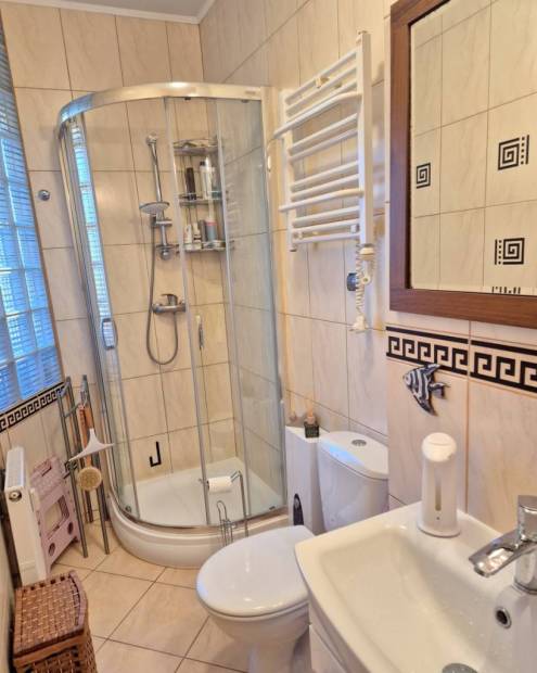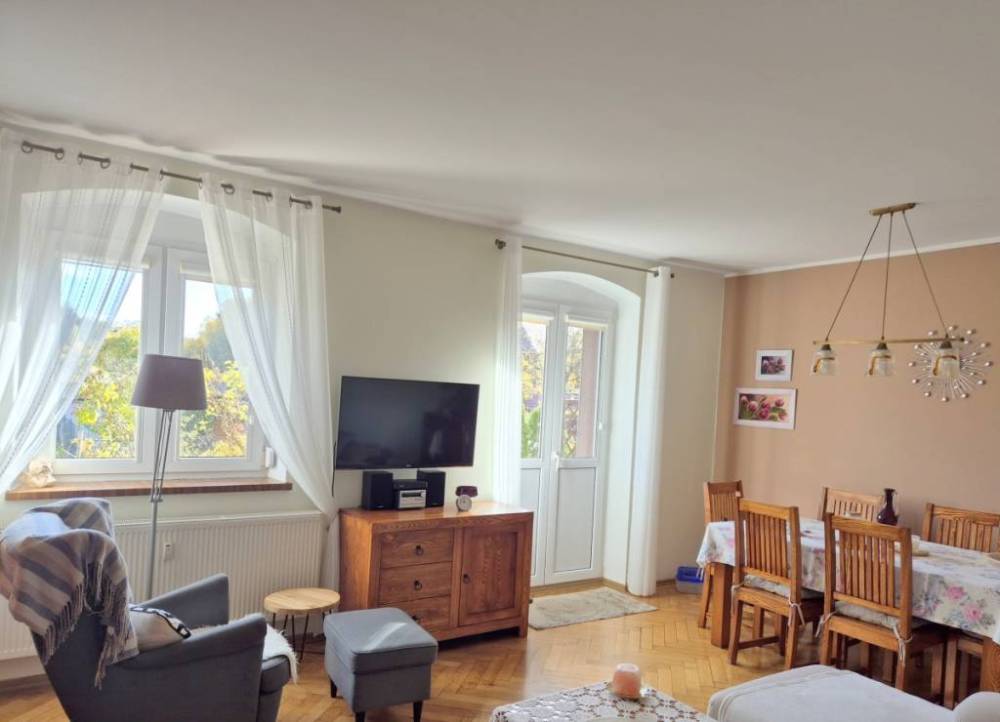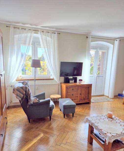 Opis Przestronne, słoneczne, jasne, dwupokojowe mieszkanie na parterze w kameralnym budynku z cegły, z użytkowaniem ogrodu przydomowego (ok.257m2). Budynek ocieplony, bezpośrednie wyjście do ogrodu z salonu. Lokal składa się z 2-ch oddzielnych, ustawnych pokoi, osobnej kuchni z oknem oraz łazienki wraz z WC (toaleta, kabina prysznicowa, umywalka, doświetlenie pomieszczenia luksferami). Mieszkanie zadbane, do zamieszkania, umeblowana i wyposażona kuchnia, mogą zostać meble w salonie i w sypialni, w przedpokoju szafa typu Komandor. Od strony ogrodu w oknach rolety okienne zewnętrzne. Do lokalu przynależą pomieszczenia dodatkowe, jak dwie komórki piwniczne (zejście do piwnicy z przedpokoju) oraz pokój-pomieszczenie gospodarcze na strychu (z oknem), a także osobne WC na półpiętrze (przy mieszkaniu). Media miejskie, jak woda (ciepła woda-przepływowy podgrzewacz), kanalizacja, energia elektryczna i CO. W budynku jest gaz, ale do mieszkania nie jest podłączony (nie było takiej potrzeby). Budynek zadbany, przy budynku przynależne miejsce parkingowe. Ogródek zadbany, nasadzenia, trawa, altanka, budynek gospodarczy, teren ogrodzony. Czynsz do Wspólnoty ok.720,- zł./m-c wraz z f. remontowym bez opłaty za wodę i ścieki (to osobno wg licznika) + energia elektryczna wg licznika. Otoczenie spokojne, dużo zieleni, ulica osiedlowa, w pobliżu pełne zaplecze handlowo-usługowe, oświatowo-zdrowotne i sportowo-rekreacyjne. Zapraszamy na prezentację i do rozmów. | |