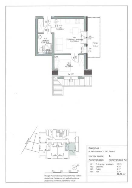 Atrakcyjna oferta sprzedaży apartamentu położonego w Karpaczu .Inwestycja w trakcie realizacji w , bardzo dobrej , lokalizacji , ,. Lokal położony jest na II piętrze , budynku od strony wschodnio południowej , powierzchnia 30,44 , m2 składa się z przedpokoju , pokoju ogólnego połączonego z aneksem kuchennym , ,sypialni , łazienki i balkonu , . Z okien apartamentu widok na panoramę Karkonoszy . Zaprojektowane w ramach inwestycji kameralne , apartamentowce stylizowane na styl Karkonoski , odpowiadają wysokim standardom technicznym i architektonicznym . Technologia budowy tradycyjna , : cegła kratówka , dach dachówka betonowa , tynki gipsowe , drzwi wewnętrzne pełne tzw. typowe stolarka okienna PCV w naturalnym kolorze drzewa , ogrzewanie centralne i ciepła woda z kotłowni lokalnej , winda . Lokale oddawane do wykończenia indywidualnego bez białego montażu , istnieje możliwość wykończenia , pod tzw. klucz . Mając na uwadze że w przypadku nieruchomości tzw wakacyjnych liczy się położenie przyszłej inwestycji , nasi stali jaki i nowi klienci bardzo cenią sobie zalety takich lokalizacji które zapewnią wzrost cen apartamentów , dobry wynajem po zakończeniu budowy i stworzą warunki do odpoczynku , oraz , rekreacji . , Sprzedaż na zasadzie cesji praw . Cena 495 000 zł brutto z miejscem postojowym zewnętrznym , . W celu bliższych informacji zapraszam do kontaktu . Tel. 514 209 936 , Adam Chojnacki , Nieruchomości Gold House .
