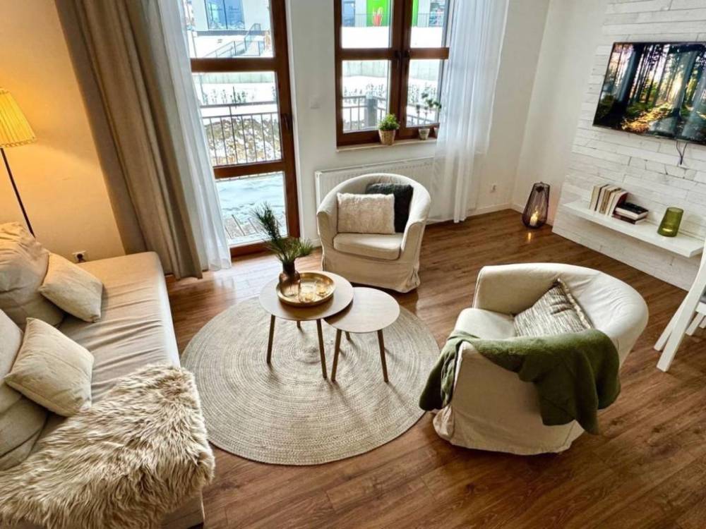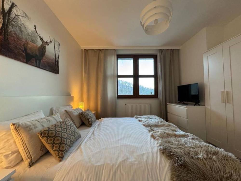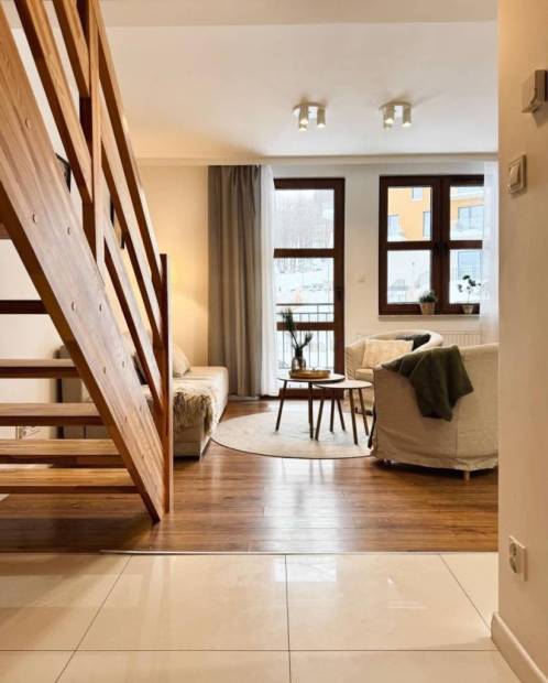 Ekskluzywny dwupoziomowy apartament z garażem - idealna propozycja dla miłośników górskiego stylu życia i sportów zimowych, zaledwie kilka kroków od wyciągu narciarskiego! Położony na drugiej i trzeciej kondygnacji nowoczesnego, kilkuletniego domu w zabudowie szeregowej, ten przestronny lokal zachwyca funkcjonalnym układem i wysokim standardem wykończenia. Na pierwszym poziomie odnajdziesz jasny, słoneczny salon z aneksem kuchennym, który otwiera się na przestronny balkon od strony południowej - idealny na poranne kawy i relaks po aktywnym dniu. Dodatkowo, na tym poziomie znajduje się komfortowa sypialnia oraz elegancka łazienka z WC i kabiną prysznicową. Na poziomie wyżej czekają dwie duże, przytulne sypialnie oraz kolejna stylowa łazienka, zapewniająca wygodę i prywatność dla całej rodziny lub gości. Apartament został gustownie urządzony, z dbałością o detale - jasne meble i drewniane schody dodają mu ciepła i przytulności, a jego aranżacja przygotowana jest na komfortowe przyjęcie nawet ósemki gości. Dodatkowym atutem jest miejsce parkingowe w garażu podziemnym, które zapewnia wygodę i bezpieczeństwo. Pięknie zagospodarowana działka z widokiem na góry dopełnia wyjątkowy charakter tej nieruchomości, tworząc idealną przestrzeń do wypoczynku i rekreacji. Lokalizacja to kolejna zaleta - odległość od wyciągu narciarskiego to zaledwie kilka kroków, co czyni tę ofertę szczególnie atrakcyjną dla entuzjastów sportów zimowych i aktywnego wypoczynku. Koszt utrzymania nieruchomości to około 600 zł czynszu miesięcznie. Cena apartamentu wynosi 899 000 zł, a miejsce parkingowe w garażu podziemnym dostępne jest za 60 000 zł. Kompleksowa cena całej nieruchomości to 959 000 zł. Serdecznie polecam i zapraszam na prezentację - ta wyjątkowa oferta może stać się Twoim wymarzonym górskim azylem!