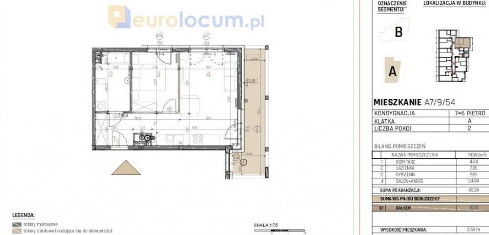 POWIERZCHNIA:  45,34mkw