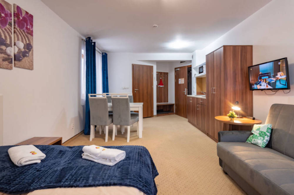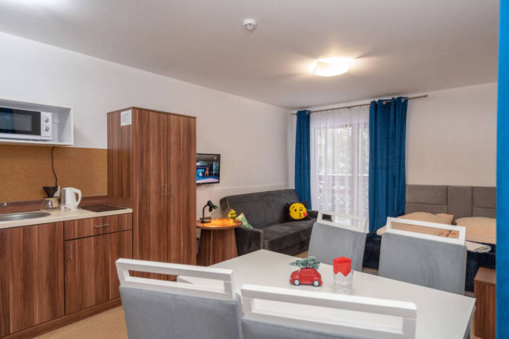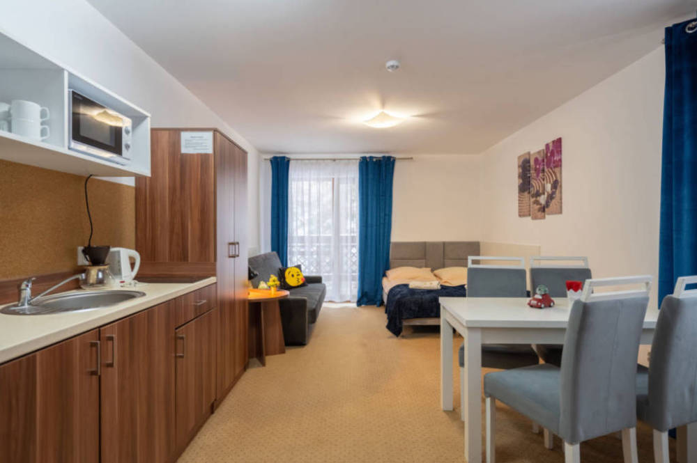 GOTOWY APARTAMENT Z BALKONEM W CENTRUM SZKLARSKIEJ PORĘBY Oferujemy na sprzedaż gotowy, w pełni umeblowany apartament w obiekcie z 2015 roku z windą i miejscami postojowymi. Budynek trzypiętrowy położony w malowniczej, zielonej okolicy zaledwie 5min spacerem od ścisłego centrum Szklarskiej Poręby z licznymi restauracjami i sklepami oraz 900m od wyciągu Ski Arena Szrenica. W obiekcie ogrzewanie podłogowe, wspólna kotłownia gazowa, ciepło opomiarowane, okna pcv, wspólnota mieszkaniowa. Apartament o pow. 27,07 położony na III piętrze, w pełni urządzony i wyposażony - w apartamencie , łazienka z prysznicem oraz , pokój z aneksem kuchennym z: lodówką, płytą indukcyjną, zlewozmywakiem i czajnikiem. Czynsz do Wspólnoty ze wszystkimi mediami za wyjątkiem energii elektrycznej wynosi 623,13 m2. Apartament z balkonem. Cena prezentowanego apartamentu o pow. 27,07 m2 to 378980 000 zł , Możliwość zakupu miejsca postojowego zewnętrznego w cenie 27 000 zł .