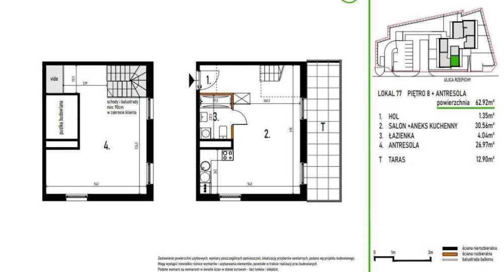 Nowoczesnemieszkanie z antresolą 62,69 m i tarasem 12,90 m - 8. piętro- Targówek, ul. Rzepichy. Cena: 881 546 zł Bezpośrednio od dewelopera. Na sprzedaż wyjątkowe mieszkanie z antresolą o łącznej powierzchni ,62,69 ,m oraz przestronnym tarasem o powierzchni ,12,90 ,m, zlokalizowane na ostatnim 8 piętrze nowoczesnego budynku z windą przy ul. Rzepichy na warszawskim Targówku. To idealna propozycja dla osób szukających przestrzeni z potencjałem aranżacyjnym - wysokie sufity, otwarta przestrzeń i antresola tworzą niepowtarzalny klimat miejskiego loftu, a taras staje się naturalnym przedłużeniem strefy dziennej - idealnym na relaks czy spotkania przy kawie. , Inwestycja: Nowoczesna inwestycja powstająca na Targówku to idealna propozycja dla osób szukających wygodnego mieszkania w doskonałej lokalizacji. Starannie zaprojektowany budynek o nowoczesnym wzornictwie toidealne miejsce dla rodzin z dziećmi, singli, młodych małżeństw czy osób starszych. W otoczeniu terenów zielonych i pełnejmiejskiej infrastruktury, mieszkańcy mogą odetchnąć od zgiełkumiasta w kameralnym zakątku starej części dzielnicy. Inwestycja obejmuje 8-piętrowy budynek z 78 mieszkaniami 1-, 2-,3- i 4-pokojowymi o powierzchni od 40 do 130 m, z głębokimi balkonami, przestronnymi tarasami i dużymi ogródkami. Do dyspozycji mieszkańców: - Miejsca postojowe w garażach podziemnych i naziemnych - Boksy rowerowe - Urokliwa strefa rekreacji na patio - Szlachetne materiały wykończeniowe w częściach wspólnych Szczegóły mieszkania: , - Powierzchnia całkowita: ,62,69 ,m - Poziom: 8. piętro (z windą) - Antresola z możliwością dowolnej aranżacji (np. sypialnia, biuro, strefa relaksu) - Taras o powierzchni ,12,90 ,m - z pięknym widokiem i dużą prywatnością - Mieszkanie w stanie deweloperskim - Komórka lokatorska - Miejsce postojowe w garażu podziemnym Lokalizacja - Targówek, ul.Rzepichy: Świetnie skomunikowana lokalizacja z dostępem do pełnejinfrastruktury: , - 3 min pieszo do sklepu osiedlowego i psiego parku - 6 min pieszo do pętli autobusowej - 11 min pieszo do żłobka - 15 min pieszo do szkoły podstawowej i pływalni Polonez - 17 min pieszo do Atrium Targówek - 15 min pieszo do stacji metra - 20 min pieszo do Parku Bródnowskiego i Lasu Bródnowskiego - 5 min autem do trasy S8 - 16 min autem do centrum Warszawy Dlaczego warto? - Przestronny taras ,12,90 ,m z widokiem ponad dachami miasta - Antresola i otwarta przestrzeń dają ogromne możliwości aranżacyjne - Nowoczesna inwestycja w spokojnej części Targówka Posiadamy również inne lokale w tej inwestycji. Zadzwoń i umów się na prezentację! Zamieszkaj nowocześnie, wysoko i wygodnie - z własnym tarasem, antresolą iświetnym dojazdem do centrum! , Kontakt: Marek 509 165 458 Więcej ofert na stronach: kobrynski.pl, www.grewal.com.pl