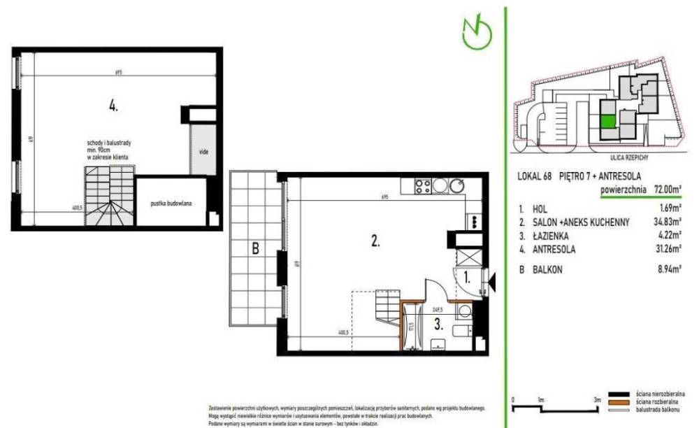 Nowoczesnemieszkanie z antresolą 72,05 m i tarasem 8,94 m - 8. piętro- Targówek, ul. Rzepichy. Cena: 911 720 zł Bezpośredniood dewelopera. Na sprzedaż wyjątkowe mieszkanie z antresolą o łącznej powierzchni ,72,05 ,m oraz przestronnym tarasem o powierzchni ,8,94 ,m, zlokalizowane na ostatnim,8. piętrze nowoczesnego budynku z windą przy ul. Rzepichy na warszawskim Targówku. To idealna propozycja dla osób szukających przestrzeni z potencjałem aranżacyjnym - wysokie sufity, otwarta przestrzeń i antresola tworzą niepowtarzalny klimat miejskiego loftu, a taras staje się naturalnym przedłużeniem strefy dziennej - idealnym na relaks czy spotkania przy kawie. , Inwestycja: Nowoczesna inwestycja powstająca na Targówku to idealna propozycja dla osób szukających wygodnego mieszkania w doskonałej lokalizacji. Starannie zaprojektowany budynek o nowoczesnym wzornictwie to idealne miejsce dla rodzin z dziećmi, singli, młodych małżeństw czy osób starszych. W otoczeniu terenów zielonych i pełnej miejskiej infrastruktury, mieszkańcy mogą odetchnąć od zgiełku miasta w kameralnym zakątku starej części dzielnicy. Inwestycja obejmuje 8-piętrowy budynek z 78 mieszkaniami 1-, 2-,3- i 4-pokojowymi o powierzchni od 40 do 130 m, z głębokimi balkonami, przestronnymi tarasami i dużymi ogródkami. Do dyspozycji mieszkańców: - Miejsca postojowe w garażach podziemnych i naziemnych - Boksy rowerowe - Urokliwa strefa rekreacji na patio - Szlachetne materiały wykończeniowe w częściach wspólnych Szczegóły mieszkania: , - Powierzchnia całkowita: ,72,05 ,m - Poziom: 8. piętro (z windą) - Antresola z możliwością dowolnej aranżacji (np. sypialnia, biuro, strefa relaksu) - Taras o powierzchni ,8,94 ,m - z pięknym widokiem i dużą prywatnością - Mieszkanie w stanie deweloperskim - Komórka lokatorska - Miejsce postojowe w garażu podziemnym Lokalizacja - Targówek, ul.Rzepichy: Świetnie skomunikowana lokalizacja z dostępem do pełnej infrastruktury: , - 3 min pieszo do sklepu osiedlowego i psiego parku - 6 min pieszo do pętli autobusowej - 11 min pieszo do żłobka - 15 min pieszo do szkoły podstawowej i pływalni Polonez - 17 min pieszo do Atrium Targówek - 15 min pieszo do stacji metra - 20 min pieszo do Parku Bródnowskiego i Lasu Bródnowskiego - 5 min autem do trasy S8 - 16 min autem do centrum Warszawy Dlaczego warto? - Przestronny taras ,8,94 ,m z widokiem ponad dachami miasta - Antresola i otwarta przestrzeń dają ogromne możliwości aranżacyjne - Nowoczesna inwestycja w spokojnej części Targówka Posiadamy również inne lokale w tej inwestycji. Zadzwoń i umów się na prezentację! Zamieszkaj nowocześnie, wysoko i wygodnie - z własnym tarasem, antresolą i świetnym dojazdem do centrum! , Kontakt: Marek 509 165 458 Więcej ofert na stronach: kobrynski.pl, www.grewal.com.pl