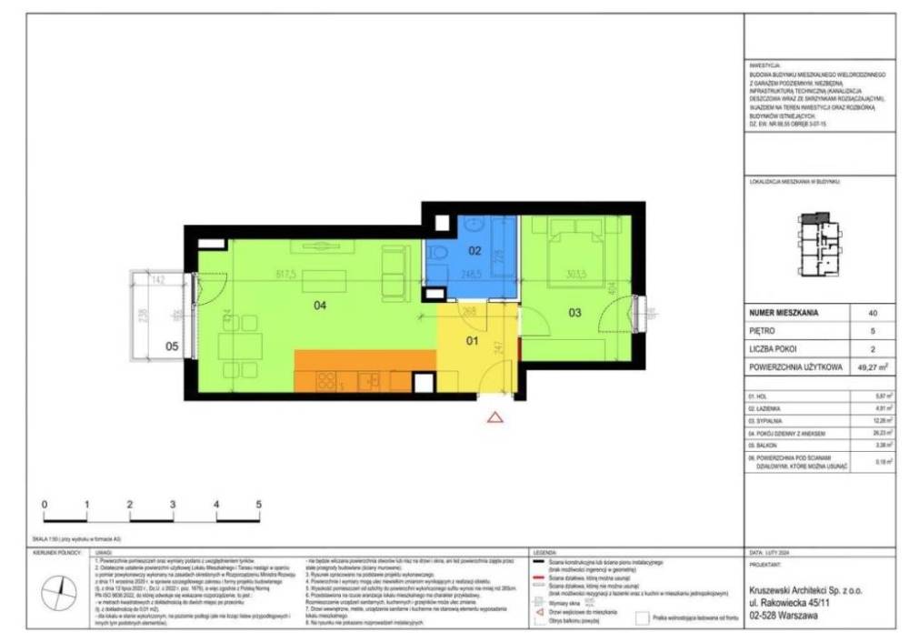 Opis ,2 pokojowe mieszkanie o pow.49,27 m2, 5 piętro | |