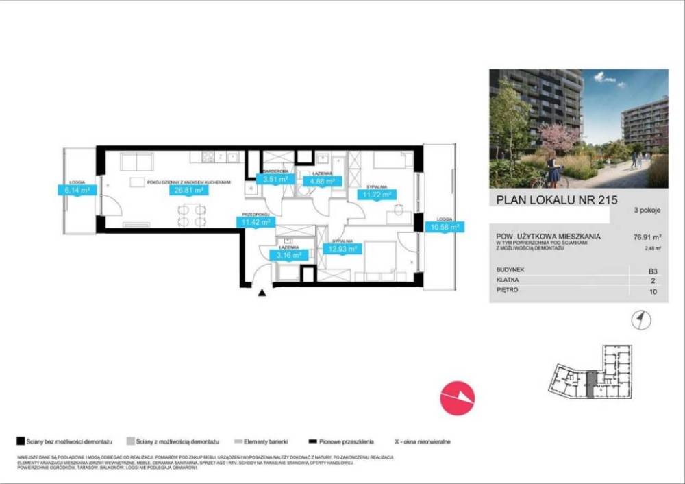 3-pokojowe nowoczesne mieszkanie z dwoma Loggiami - 10. piętro - , Wola, Gumińska , , Cena: 1 562 214 zł Bezpośrednio od dewelopera Na sprzedaż komfortowe, 3-pokojowe mieszkanie o powierzchni 76,91 m, położone na 10 piętrze nowoczesnego budynku z windą, przy ulicy Gumińskiej na warszawskim Wilanowie. Przemyślany układ pomieszczeń zapewnia wygodę zarówno rodzinie, jak i parze czy singlowi poszukującemu przestrzeni do życia i pracy w jednym miejscu. Rozkład pomieszczeń: Salon a aneksem kuchennych , - 26,81 m Przedpokój - 11,42 m , Garderoba - 3,51 m , , Sypialnia 1 - 12,93 m , , , Sypialnia 2 - 11,72 m , , Łazienka 1 - 4,88 m , Łazienka 2 - 3,16 m , Loggia 1 - 10,58 ,m , Loggia 2 - 6,14 ,m , O inwestycji , , Wola to nowoczesna, dynamiczna i samowystarczalna dzielnica Warszawy pełna życia, energii i miejskich atrakcji. To miejsce, w którym wszystko, co ważne dla współczesnego stylu życia, znajduje się w zasięgu krótkiego spaceru. Odkryj, co sprawia, że codzienność tutaj jest tak wygodna i wyjątkowa. W promieniu 15 minut pieszo czekają liczne udogodnienia i miejsca sprzyjające spędzaniu wolnego czasu. W najbliższym otoczeniu znajdziesz m.in.: , Multikino i centrum handlowe Wola Park , Ogrody Ulricha , Amfiteatr Wolskiego Centrum Kultury , Muzeum Powstania Warszawskiego , Galerie sztuki i centrum Expo XXI , Liczne restauracje, kawiarnie i lokale usługowe , Dzięki bliskości centrów handlowych wszystkie codzienne sprawy załatwisz w jednym miejscu od zakupów, przez kino, po ulubione restauracje. W okolicy znajdują się również przychodnie, szpitale oraz gabinety weterynaryjne, co zapewnia komfort i poczucie bezpieczeństwa zarówno Tobie, jak i Twojemu pupilowi. Rodziny docenią dostęp do renomowanych żłobków, przedszkoli i szkół, położonych w pobliżu osiedla. W bezpośrednim sąsiedztwie znajduje się także ponad 100 hektarów terenów zielonych urokliwe skwery i rozległe parki idealne na spacery, rekreację i spotkania z bliskimi. Dlaczego warto? , W mieszkaniach zastosowano bezprzewodowy system inteligentnego zarządzania domem. Za pomocą smartfona lub komend głosowych możesz sterować oświetleniem, regulować temperaturę czy wyłączać urządzenia elektryczne. W cenie mieszkania otrzymasz pakiet startowy, który możesz dowolnie rozbudowywać i dostosowywać do swoich potrzeb dzięki temu zawsze masz pełną kontrolę nad swoim domem, niezależnie od tego, gdzie jesteś. , Na terenie osiedla znajdziesz m.in.: , dostęp do części wspólnych za pomocą aplikacji, , punkt odbioru paczek, , stację ładowania pojazdów elektrycznych, , strefy rekreacyjne, , rowerownie. Posiadamy również inne lokale w tej inwestycji. Zadzwoń i umów się na prezentację! Zamieszkaj nowocześnie, wysoko i wygodnie - z własnym tarasem, antresolą iświetnym dojazdem do centrum! , Kontakt: Marek 509 165 458 Więcej ofert na stronach: kobrynski.pl, www.grewal.com.pl ,