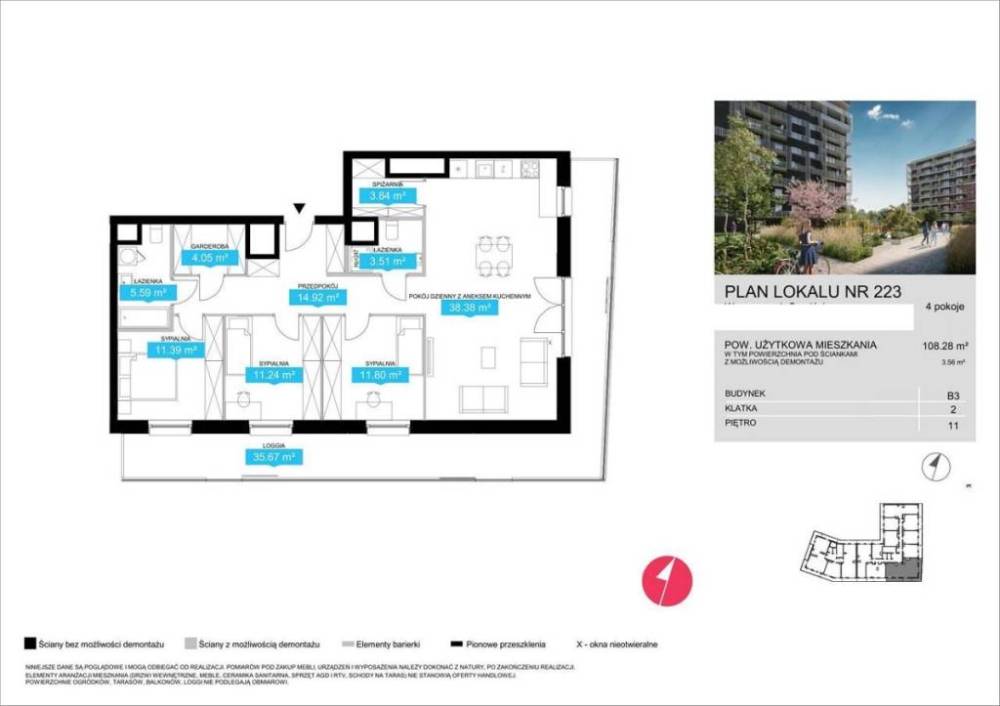 4-pokojowe nowoczesne mieszkanie z dużą Loggią - 11. piętro - , Wola, Gumińska , , Cena: 2 200 915 zł Bezpośrednio od dewelopera Na sprzedaż komfortowe, 4-pokojowe mieszkanie o powierzchni 108,28 m, położone na 11 piętrze nowoczesnego budynku z windą, przy ulicy Gumińskiej na warszawskim Wilanowie. Przemyślany układ pomieszczeń zapewnia wygodę zarówno rodzinie, jak i parze czy singlowi poszukującemu przestrzeni do życia i pracy w jednym miejscu. Rozkład pomieszczeń: Salon a aneksem kuchennych , - 38,38 m Przedpokój - 11,92 m , , Spiżarnia - 3,84 m , Garderoba - 4,05 m , , Sypialnia 1 - 11,39 m , , , Sypialnia 2 - 11,24 m , Sypialnia 3 - 11,80 m , Łazienka 1 - 5,59 m , Łazienka 2 - 3,51 m , Loggia - 35,67 ,m , , O inwestycji , , Wola to nowoczesna, dynamiczna i samowystarczalna dzielnica Warszawy pełna życia, energii i miejskich atrakcji. To miejsce, w którym wszystko, co ważne dla współczesnego stylu życia, znajduje się w zasięgu krótkiego spaceru. Odkryj, co sprawia, że codzienność tutaj jest tak wygodna i wyjątkowa. W promieniu 15 minut pieszo czekają liczne udogodnienia i miejsca sprzyjające spędzaniu wolnego czasu. W najbliższym otoczeniu znajdziesz m.in.: , Multikino i centrum handlowe Wola Park , Ogrody Ulricha , Amfiteatr Wolskiego Centrum Kultury , Muzeum Powstania Warszawskiego , Galerie sztuki i centrum Expo XXI , Liczne restauracje, kawiarnie i lokale usługowe , Dzięki bliskości centrów handlowych wszystkie codzienne sprawy załatwisz w jednym miejscu od zakupów, przez kino, po ulubione restauracje. W okolicy znajdują się również przychodnie, szpitale oraz gabinety weterynaryjne, co zapewnia komfort i poczucie bezpieczeństwa zarówno Tobie, jak i Twojemu pupilowi. Rodziny docenią dostęp do renomowanych żłobków, przedszkoli i szkół, położonych w pobliżu osiedla. W bezpośrednim sąsiedztwie znajduje się także ponad 100 hektarów terenów zielonych urokliwe skwery i rozległe parki idealne na spacery, rekreację i spotkania z bliskimi. Dlaczego warto? , W mieszkaniach zastosowano bezprzewodowy system inteligentnego zarządzania domem. Za pomocą smartfona lub komend głosowych możesz sterować oświetleniem, regulować temperaturę czy wyłączać urządzenia elektryczne. W cenie mieszkania otrzymasz pakiet startowy, który możesz dowolnie rozbudowywać i dostosowywać do swoich potrzeb dzięki temu zawsze masz pełną kontrolę nad swoim domem, niezależnie od tego, gdzie jesteś. , Na terenie osiedla znajdziesz m.in.: , dostęp do części wspólnych za pomocą aplikacji, , punkt odbioru paczek, , stację ładowania pojazdów elektrycznych, , strefy rekreacyjne, , rowerownie. Posiadamy również inne lokale w tej inwestycji. Zadzwoń i umów się na prezentację! Zamieszkaj nowocześnie, wysoko i wygodnie - z własnym tarasem, antresolą iświetnym dojazdem do centrum! , Kontakt: Marek 509 165 458 Więcej ofert na stronach: kobrynski.pl, www.grewal.com.pl ,