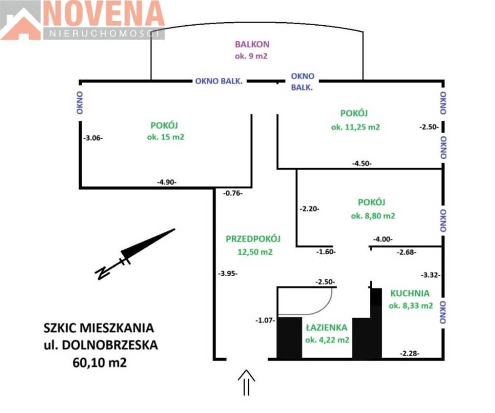 ::KONTAKT: Anna Kościńska, tel. 519 186 407 od poniedziałku do piątku w godzinach od 10.00 do 18.00 NOWA CENA! Do sprzedaży mieszkanie 3-pokojowe, o powierzchni 60,10 m2 położone na czwartym piętrze w czteropiętrowym budynku z 2003 roku na wrocławskim osiedlu Leśnica przy ulicy Dolnobrzeskiej. Przynależy do niego komórka lokatorska (3,23 m2). Nieruchomość położona w bezpośrednim sąsiedztwie największego kompleksu leśnego w granicach miasta - Lasu Mokrzańskiego . Kilka minut spaceru, aby znaleźć się wśród pięknego starodrzewu, licznych ścieżek pieszych i rowerowych - teren doskonale nadaje się do rekreacji na świeżym powietrzu przez cały rok. Nieruchomość wyłącznie w naszym biurze. 0% PROWIZJI OD KUPUJĄCEGO. Lokal składa się: - słonecznego pokoju dziennego (ok. 15 m2) z wyjściem na duży balkon (ok. 9 m2), - 2 sypialni (ok. 11,25 m2 i 8,80 m2), - widnej kuchni (ok. 8,33 m2) - łazienki z wanną (ok. 4,22 m2), - przedpokoju (ok. 12,50 m2). Okna PCV, na podłogach panele lub kafle (w zależności od pomieszczenia), ściany pomalowane. Mieszkanie rozkładowe, słoneczne, trójstronne - wystawa na północny-zachód, południowy-zachód i północny-wschód. Ze względu na usytuowanie na 4-tym piętrze i niską zabudowę wokół, przez cały rok można podziwiać widok na las, a wieczorami piękne zachody słońca. Opłaty: ok. 750 zł/m-c do wspólnoty mieszkaniowej łącznie z funduszem remontowym, śmieciami, zaliczką na wodę, ogrzewanie oraz utrzymaniem części wspólnych. Ogrzewanie mieszkania i podgrzanie wody z lokalnej kotłowni gazowej. Przy budynku ogólnodostępny parking. Atutem Leśnicy jest własne ujęcie wody ze studni poborowych usytuowanych w pobliskim lesie. W okolicy znajdują się wszystkie niezbędne udogodnienia komunikacyjne, handlowe, edukacyjne, opiekuńcze i rekreacyjne. W odległości 250 m znajduje się przystanek autobusowy, 1,3 km pętla tramwajowej, 1,3 km stacja PKP (do centrum miasta można dojechać w zaledwie 15 min). Nieopodal znajduje się pięknie odrestaurowany Zamek Leśnicki, pełniący funkcję turystyczną, kulturalną (prężnie działające Centrum Kultury Zamek), jak i rekreacyjną (malowniczy park przyzamkowy). W bezpośrednim sąsiedztwie budynku znajdują sie m.in.: Żabka, pizzeria, gabinet weterynaryjny, paczkomat. Zapraszamy do zapoznania się z nieruchomością. ::KONTAKT: Anna Kościńska tel. 519 186 407 Razem z Właścicielami nieruchomości, które mamy w swojej ofercie, zwracamy się z prośbą o uszanowanie prywatności i nie przyjeżdżanie na miejsce bez zapowiedzi i opiekuna z naszego Biura. Prezentujemy tylko sprawdzone oferty. Pomagamy w udzieleniu kredytu na zakup nieruchomości. Naszym Klientom oferujemy również pomoc prawną. Powyższa oferta ma charakter informacyjny i nie stanowi oferty handlowej w rozumieniu art.66 1 Kodeksu Cywilnego. Opis oferty sporządzany jest na podstawie oględzin nieruchomości oraz informacji uzyskanych od właściciela i może podlegać aktualizacji.