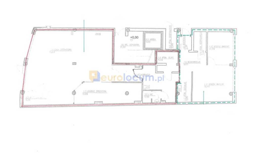 Oferuję do wynajęcia lokal handlowo - usługowy o pow. 173,44 mkw, usytuowany na parterze budynku w Centrum miasta. Lokal składa się z 4 pomieszczeń, pom. socjalnego oraz 2 łazienek (w tym jedna przystosowana do osób niepełnosprawnych). 2 niezależne wejścia - jedno bezpośrednio z ulicy (duże witryny), drugie od podwórka. Lokal w stanie dobrym, do własnej aranżacji wnętrza przez przyszłego najemcę. Dodatkowo 2 miejsca postojowe do wyłącznego użytku przez najemcę. Miesięczny czynsz: 8000 zł + media wg wskazań liczników. Lokal dostępny od zaraz. Wynagrodzenie za usługę biura pokrywa wyłącznie właściciel lokalu. ------------------------------------------------------------------------------------------ Profesjonalizm naszych usług oparty jest na 40-letnim doświadczeniu i kierunkowym wykształceniu naszej ekipy. Transakcje realizowane są przez licencjonowanych pośredników i doradców, w oparciu o przepisy prawa i znajomość lokalnego rynku. Dodatkowo naszych klientów chroni polisa OC - Grupy GENERALI. Nasi doradcy finansowi wyszukają najlepszy kredyt lub dofinansowanie. Poprzez sieć i kontakty, nasze oferty docierają do największej rzeszy klientów nie tylko w Polsce. Zapraszamy - ekipa EUROLOCUM.pl