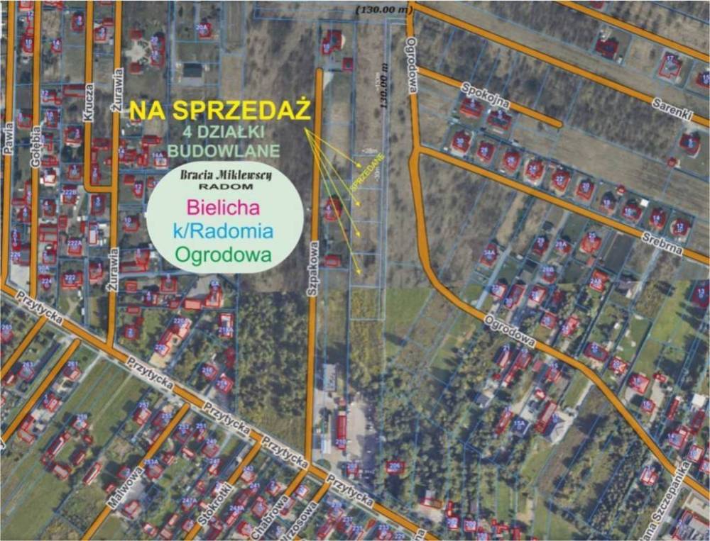 DO SPRZEDANIA !!! Posiadamy na sprzedaż trzy działki budowlane o powierzchni ok. 870 metrów kwadratowych każda, z warunkami zabudowy na budowę budynku mieszkalnego, jednorodzinnego wraz z infrastrukturą techniczną. Działka nr 189/3 o pow. 868 m2 Działka nr 189/4 o pow. 867 m2 Działka nr 189/5 o pow. 866 m2 Możliwość zakupu całego terenu lub każdej działki osobno. Doskonała lokalizacja zaledwie 650 metrów od szkoły podstawowej lub żłobka, przystanku autobusowego oraz w sąsiedztwie lasu, sprawiają, że te działki są idealne dla rodzin z dziećmi lub osób ceniących kontakt z naturą. Położona w spokojnej okolicy działka z dostępem do prądu przy wjeździe do drogi wewnętrznej od ul. Ogrodowej czeka na Ciebie. Dojazd do działki zapewnia utwardzona droga wewnętrzna, przy czym udział w drodze jest również zagwarantowany oraz w cenie działki. Nie przegap okazji. Skontaktuj się z nami już dziś i dowiedz się więcej! ZAPRASZAMY NA PREZENTACJĘ !!! KUPUJĄCY NIE PŁACI PROWIZJI !!!