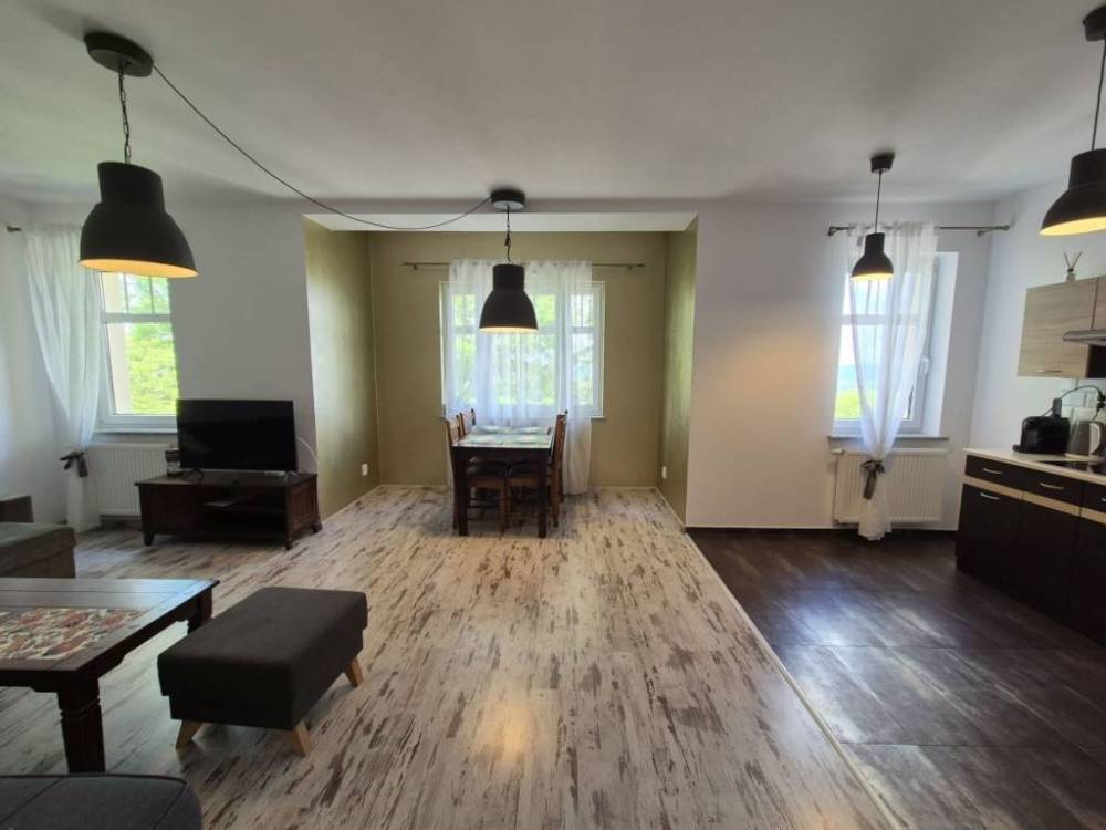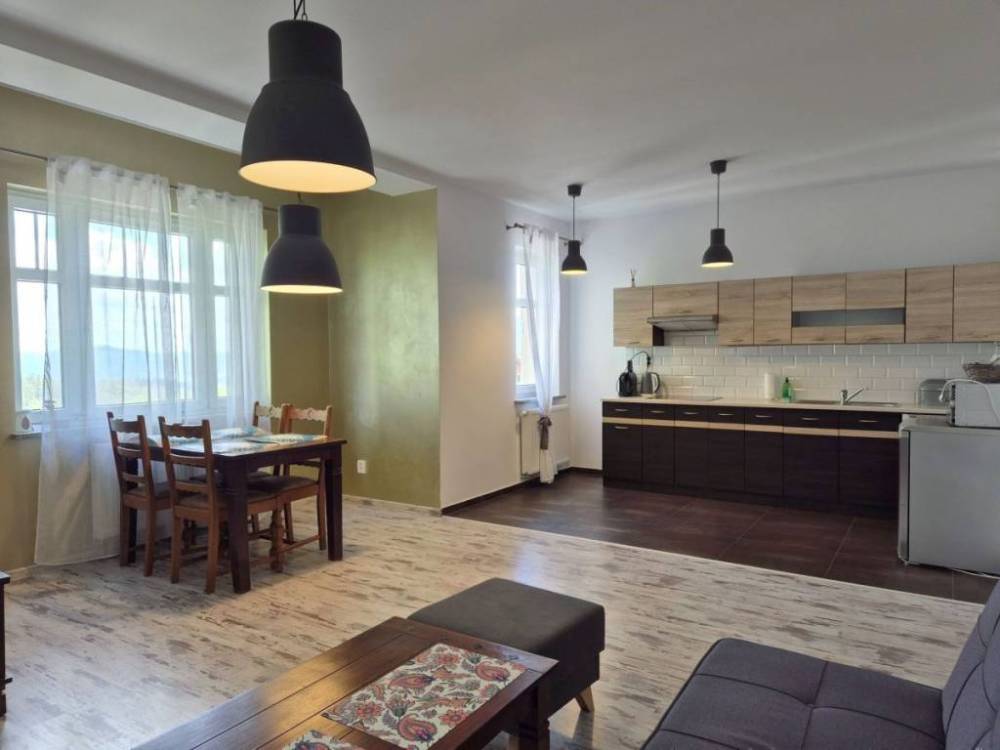 APARTAMENT INWESTYCYJNY - KARPACZ Oferujemy do sprzedaży przestronny apartament (lokal mieszkalny) położony w kilkuletnim budynku w Karpaczu górnym, z przepięknym widokiem na Karkonosze i Kotlinę Jeleniogórską. Lokal o pow. 58,06m2, położony jest na I piętrze i składa się z dużego salonu połączonego z aneksem kuchennym (w wykuszu znajduje się miejsce na stół), sypialni, łazienki z wc oraz przedpokoju z garderobą. Istnieje możliwość wydzielenia dodatkowego pokoju i wówczas uzyskujemy 2 sypialnie oraz przestrzeń dzienną. Apartament bardzo estetycznie i nowocześnie wykończony, dobrze doświetlony światłem dziennym. Ogromnym atutem nieruchomości jest widok oraz bliskość szlaków górskich, Świątyni Wang i Parku wodnego Tropikana. Mieszkanie całkowicie wyposażone i przygotowane pod wynajem krótkoterminowy lub do własnego użytku. Możliwość współpracy z operatorem zajmującym się obsługą wynajmu turystycznego. Przynależy indywidualne miejsce parkingowe na terenie posesji w cenie dodatkowo 25.000 zł. CENA 750.000 zł apartament 725.750 zł parking zewnętrzy - 25.000 zł Lokal posiada status lokalu mieszkalnego. OFERTA DOSTĘPNA TYLKO U NAS ZAPRASZAM NA PREZENTACJĘ. KLUCZE W BIURZE :) KONTAKT: Izabela Binkowska tel. 501-18-18-75 *Niniejsza oferta, nie jest ofertą handlową w rozumieniu Kodeksu Cywilnego, ma ona charakter jedynie informacyjny i może ulec zmianie.