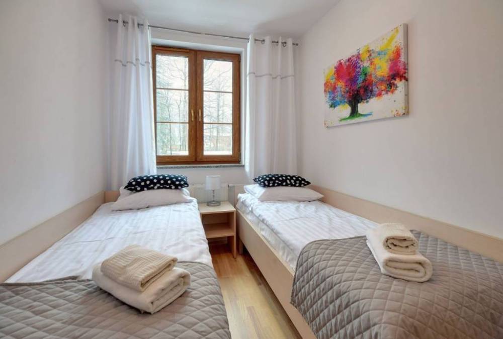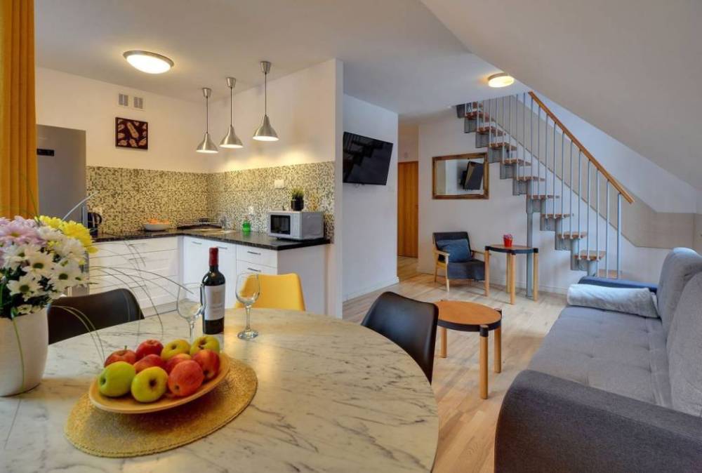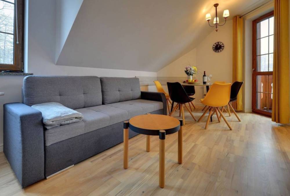 Atrakcyjna oferta sprzedaży apartamentu położonego w centrum Karpaczu w bardzo dobrej lokalizacji . Lokal dwupoziomowy położony jest na II piętrze budynku od strony południowej . Powierzchnia apartamentu 54,82 m2 lokal składa się z przedpokoju , pokoju ogólnego połączonego z aneksem kuchennym ,sypialni , łazienki , balkonu , oraz drugiego poziomu z przestronną sypialnią i drugą łazienką . Na posesji przynależne dwa miejsca postojowe . Apartament przystosowany do przyjęcia 6 osób ( max 8) . Wybudowany w ramach inwestycji kameralny apartamentowiec stylizowany na styl Karkonoski , odpowiada wysokim standardom technicznym i architektonicznym . Technologia budowy tradycyjna : cegła kratówka , dach dachówka betonowa , tynki gipsowe , drzwi wewnętrzne pełne tzw. typowe stolarka okienna PCV w naturalnym kolorze drzewa , ogrzewanie centralne i ciepła woda z kotłowni lokalnej . Apartament starannie wykończony sprzedawany z wyposażeniem widocznym na zdjęciach Mając na uwadze że w przypadku nieruchomości tzw wakacyjnych liczy się położenie inwestycji , nasi stali jaki i nowi klienci bardzo cenią sobie zalety takich lokalizacji które zapewnią wzrost cen apartamentów , dobry wynajem i stworzą warunki do odpoczynku oraz rekreacji . Apartament : 689 000 zł Dwa miejsca postojowe 50 000 zł Cena razem 739 000 zł z wyposażeniem i dwoma miejscami postojowymi . Kontakt : Adam Chojnacki Nieruchomości Gold House Jelenia Góra . Tel. 514 209 936 .