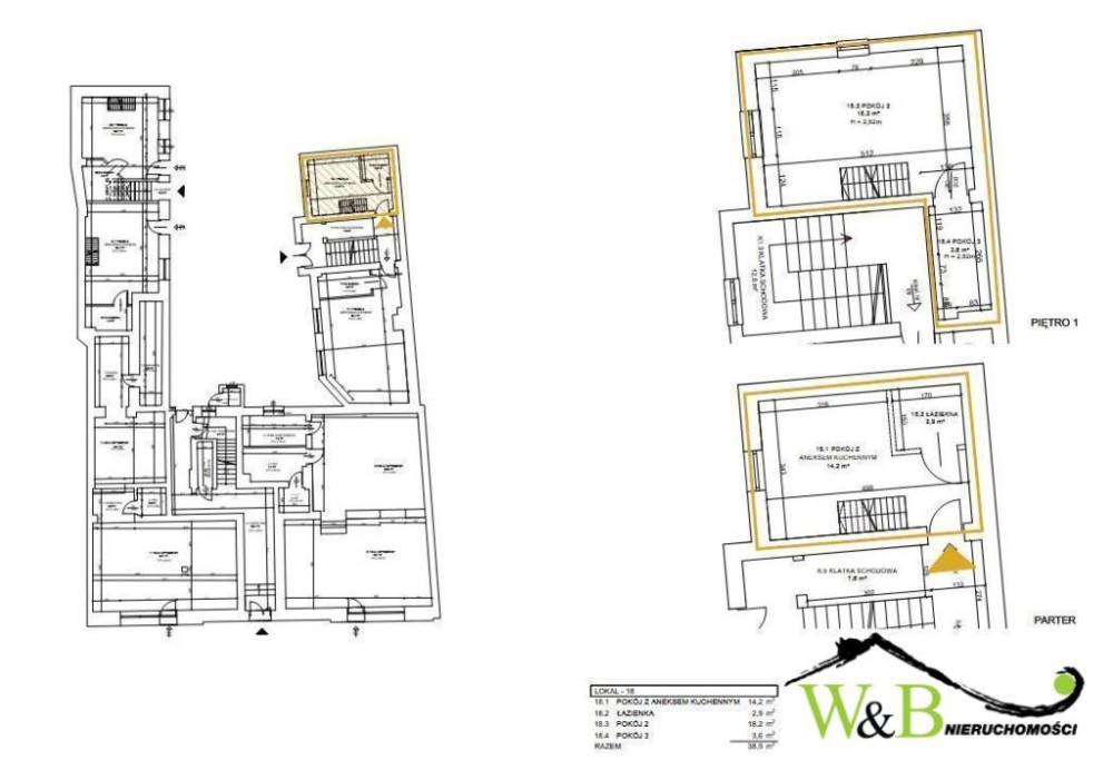 Na sprzedaż mieszkanie dwupoziomowe w Centrum Tarnowskich Gór, oficyna. Na parterze pokój z aneksem kuchennym + łazienka. , Na piętrze - pokój 18,2m2 + garderoba 3,6m2 Główne zalety mieszkania: - centralna lokalizacja - możliwość wykończenia mieszkania wg własnego pomysłu - wydzielona piętrami strefa dzienna i nocna Dodatkowe możliwości: - zakup miejsca postojowego - najem powierzchni w piwnicy , , - wybór mieszkania - inne powierzchnia, piętro ,ilość pokoi Budynek/media/lokalizacja - kamienica położona w centrum miasta - wyremontowana klatka schodowa - wymienione instalacje wod-kan - ogrzewanie i ciepła woda we własnym zakresie przy wykorzystaniu instalacji gazowej - kanalizacja miejska - dostępność do szerokiej infrastruktury (szkoła, przedszkole, sklepy, przychodnia, autobus) Zapraszamy na prezentację. Powyższa oferta ma charakter informacyjny i nie stanowi oferty handlowej w rozumieniu art.66 1 kodeksu cywilnego oraz innych właściwych przepisów prawnych. Jako biuro oferujemy Państwu kompleksową obsługę poprzez: - wybór najodpowiedniejszej dla Państwa nieruchomości, - pomoc w uzyskaniu najbardziej korzystnego finansowania - pomoc w załatwieniu wszelkich formalności związanych z przeniesieniem własności dokumenty do aktu notarialnego, przepisanie mediów, kwestie związane z podatkiem od nieruchomości). Zapraszamy do współpracy. Zachęcamy do zapoznania się z innymi naszymi ofertami na www.wb.nieruchomosci.pl