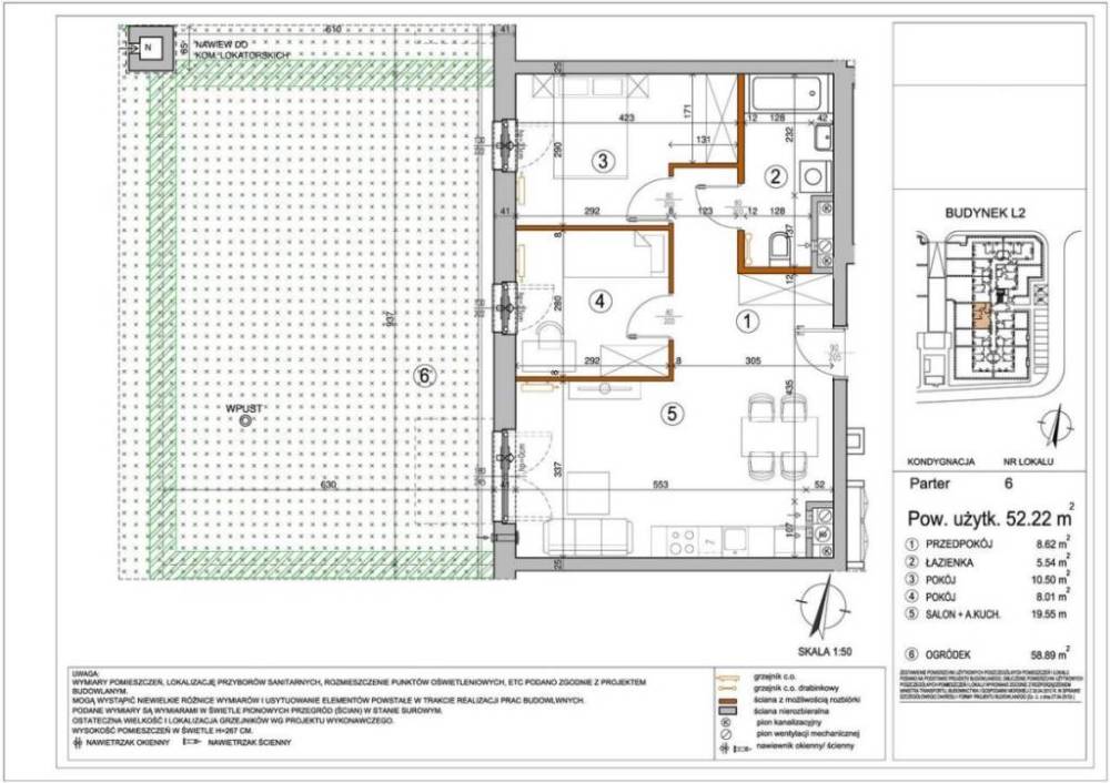 3-pokojowe nowoczesne mieszkanie z dużym ogóródkiem - , Rembertów, Chełmżyńska , Cena: 668 416 zł Bezpośrednio od dewelopera Na sprzedaż komfortowe, 3-pokojowe mieszkanie o powierzchni 52,22 m, położone na parterze nowoczesnego budynku z windą, przy ulicy Chełmżyńskiej w warszawskim Rembertowie. Przemyślany układ pomieszczeń zapewnia wygodę zarówno rodzinie, jak i parze czy singlowi poszukującemu przestrzeni do życia i pracy w jednym miejscu. Rozkład pomieszczeń: Salon z aneksem kuchennym , - 19,55 m Przedpokój - 8,62 m Pokój - 10,50 m , , Pokój - 8,01 m , Łazienka - 5,54 m , , , , , Ogródek- 58,89 ,m , , O inwestycji , , , Inwestycja powstaje tuż przy Lesie Rembertowskim, określanym jako `wschodnie płuca Warszawy`. To zielona, spokojna przestrzeń, która tworzy naturalną oazę sprzyjającą codziennemu wypoczynkowi. Jednocześnie dojazd do centrum Warszawy zajmuje około 20 minut, co pozwala łączyć komfort natury z wygodą miejskiego życia. Standard i udogodnienia Parametry techniczne - Wysokość pomieszczeń: od 260 do 280 cm (w zależności od , kondygnacji) - Standard wykończenia: deweloperski - Forma własności: odrębna własność z udziałem w gruncie Udogodnienia na terenie osiedla - plac zabaw - teren ogrodzony z kontrolą dostępu - ogródki przynależne do mieszkań na parterze - winda w każdym budynku Otoczenie i komunikacja - bezpośrednie sąsiedztwo Lasu Rembertowskiego - sklepy i punkty usługowe na terenie inwestycji - przystanek komunikacji miejskiej tuż przy osiedlu - linia 145 (Żerań FSO - Wiatraczna) Cennik miejsc postojowych , Miejsce postojowe w garażu podziemnym: 39 000 zł brutto (8% VAT) Miejsce postojowe naziemne: 27 000 zł brutto (8% VAT) Komórka lokatorska: 6 500 zł/m brutto (8% VAT) Zakup miejsca w garażu podziemnym jest obowiązkowy dla mieszkań 2 i 3pokojowych. Posiadamy również inne lokale w tej inwestycji. Zadzwoń i umów się na prezentację! Zamieszkaj nowocześnie, wysoko i wygodnie - z własnym tarasem, antresolą iświetnym dojazdem do centrum! , Kontakt: Marek 509 165 458 Więcej ofert na stronach: kobrynski.pl, www.grewal.com.pl ,