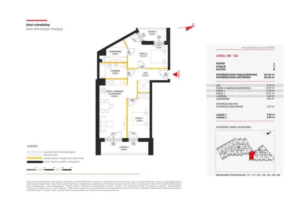 3-pokojowe nowoczesne mieszkanie z dwoma Loggiami - 4. piętro - , Białołęka, Marywilska , , Cena: 787 300 zł Bezpośrednio od dewelopera Na sprzedaż komfortowe, 3-pokojowe mieszkanie o powierzchni 64,50 m, położone na 4 piętrze nowoczesnego budynku z windą, przy ulicy Marywilskiej na warszawskiej Białołęce. Przemyślany układ pomieszczeń zapewnia wygodę zarówno rodzinie, jak i parze czy singlowi poszukującemu przestrzeni do życia i pracy w jednym miejscu. Rozkład pomieszczeń: Salon z aneksem kuchennym , - 19,49 m Hol - 9,74 m Pokój 1 - 11,68 m , , Pokój 2 - 13,31 m , Łazienka - 5,28 m , Garderoba ,- 5,00 m , Loggia 1 - 3,60 ,m , Loggia 2 - 6,80 ,m , O inwestycji , , , Osiedle oferuje szeroki zakres udogodnień, które podnoszą komfort codziennego życia mieszkańców. Do dyspozycji są ogólnodostępne naziemne miejsca postojowe, garaż podziemny oraz stacja ładowania samochodów elektrycznych. Na terenie inwestycji zaplanowano również lokale usługowe, boksy rowerowe i komórki lokatorskie, co zapewnia wygodę i funkcjonalność na co dzień. Przestrzenie rekreacyjne, trzy place zabaw oraz ogródki lokatorskie tworzą przyjazne, zielone otoczenie sprzyjające odpoczynkowi i aktywności na świeżym powietrzu , Dlaczego warto? , Nowy etap inwestycji oferuje jeszcze więcej komfortowych mieszkań, zielonych przestrzeni i praktycznych udogodnień. Sprawdzone rozwiązania architektoniczne, rozwinięta infrastruktura oraz przyjazne otoczenie sprawiają, że jest to idealne miejsce zarówno dla rodzin, jak i singli. Bliskość szkół, przedszkoli, sklepów i punktów usługowych zapewnia wygodę w codziennym funkcjonowaniu. Dobra komunikacja umożliwia szybki dojazd do centrum miasta, a liczne ścieżki rowerowe i tereny zielone czynią osiedle atrakcyjnym wyborem dla osób prowadzących aktywny tryb życia. , Cennik miejsc postojowych , Miejsce postojowe: 38 000 zł Miejsce postojowe niezależne (platforma parkingowa podwójna): 30 000 / 32 000 zł Miejsce postojowe niezależne (platforma parkingowa pojedyncza): 32 000 zł Miejsce postojowe rodzinne: 45 000 zł Miejsce postojowe z boksem: 61 310 zł Miejsce postojowe naziemne: 30 000 zł Posiadamy również inne lokale w tej inwestycji. Zadzwoń i umów się na prezentację! Zamieszkaj nowocześnie, wysoko i wygodnie - z własnym tarasem, antresolą iświetnym dojazdem do centrum! , Kontakt: Marek 509 165 458 Więcej ofert na stronach: kobrynski.pl, www.grewal.com.pl ,