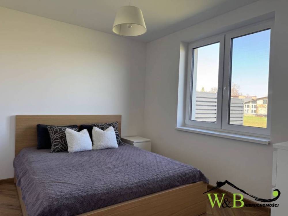 Na wynajem nowocześnie urządzony, wolnostojący dom parterowy . Nieruchomość znajduje się na nowym osiedlu domków parterowych. Lokal składa się z: - salonu połączonego z kuchnią i jadalnią (ok 24m2), - 2 sypialni (9,82m2 i 10,31m2), - łazienki z prysznicem (4,22m2), - wiatrołap - poddasze budynku nieużytkowe - doskonała strefa do przechowywania. Wyposażenie domu stanowi: - nowoczesna zabudowa kuchenna ze sprzętem AGD (kuchenka elektryczna, zmywarka, lodówka, piekarnik) - urządzony salon - sofa, stolik kawowy, szafka RTV - wyposażona 1 sypialnia (łóżko z materacem, pojemna szafa) - zabudowana garderoba w wiatrołapie - wygodna łazienka z prysznicem, pralka oraz suszarka - klimatyzacja , - rolety elektryczne we wszystkich oknach, ,w części okien moskitiery Do budynku przynależy ogródek z zadaszonym i wybrukowanym tarasem (w cenie meble ogrodowe i domek ogrodowy) oraz 2 miejsca postojowe. Całość ogrodzona, brama z napędem elektrycznym. , Dużym walorem domu jest: - jego spokojna lokalizacja na zorganizowanym osiedlu , - cudowny widok z salonu i przyległego tarasu. , , - komfortowy dojazd , - wewnętrzna droga urządzona, droga publiczna - asfaltowa, z chodnikiem Serdecznie zapraszamy na prezentację. Powyższa oferta ma charakter informacyjny i nie stanowi oferty handlowej w rozumieniu art.66 1 kodeksu cywilnego oraz innych właściwych przepisów prawnych. Jako biuro oferujemy Państwu kompleksową obsługę poprzez: , - wybór najodpowiedniejszej dla Państwa nieruchomości, , - pomoc w uzyskaniu najbardziej korzystnego finansowania, , - pomoc w załatwieniu wszelkich formalności związanych z przeniesieniem własności (dokumenty do aktu notarialnego, przepisanie mediów, kwestie związane z podatkiem od nieruchomości). , Zapraszamy do współpracy.